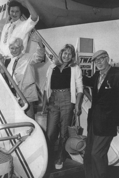Ив Макклур, Генри Тони, Вэлентайн и Генри Миллер у трапа самолета