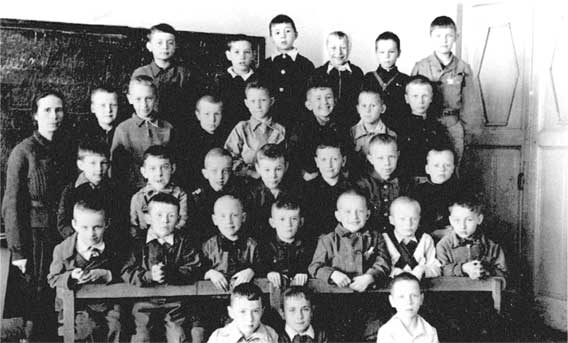 Школьный групповой снимок. Май 1946 г. Москва, Школа №73, 13 мая 1946 года, 2-й Б класс.