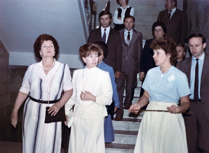 Работая над этой главой, я решила побеседовать со свидетелями тех событий, дабы ничего не напутать. Мы собрались, славно посидели, повспоминали былое, которого оказалось так мало, и один мой товарищ поделился со мной фотографией. На ней в дни визита в Днепропетровск Раиса Максимовна посещает музей некоего нашего предприятия (Боже мой, при социализме можно было сказать: «Нашего» — теперь так не скажешь…). На фото рядом с ней (справа) стоит жена Виктора Григорьевича Бойко (с сумочкой через плечо). Вокруг — свита. Слева от высокой гостьи, с указкой в руках, стоит сотрудница предприятия, видимо, проводящая для посетителей экскурсию, и что-то говорит. Но главное внимание привлекает то, как резко Раиса Максимовна повернулась к ней боком, так что пришлось выворачивать голову, чтобы видеть ее. Она даже сумку свою взяла в левую руку, а правой рукой отгородилась от нее. Мило, правда? Примечательно также выражение лица Раисы Максимовны, с которым она слушает рассказ, — высокомерное, презрительное, уничтожающее, злобное. Глаза холодные, острые. Не смогла наша «первая леди» скрыть истинного отношения к своим согражданам, несмотря на умение позировать перед объективами!