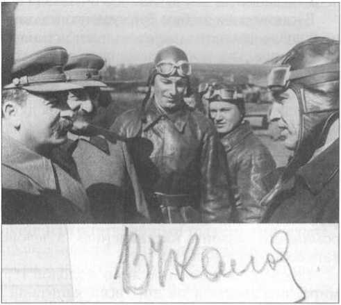 Фотография Чкалова со Сталиным и Орджоникидзе из альбома Музы Малиновской: на фотографии стоит автограф знаменитого летника