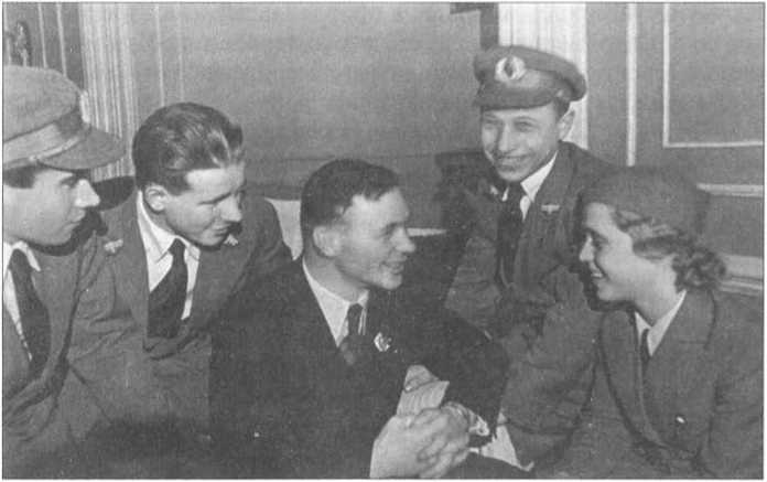 Встреча Музы и её коллег с прославленным лётчиком Коккинаки