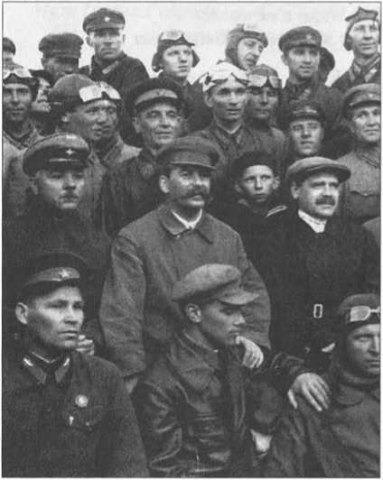 Сталин, Ворошилов и авиаконструктор Яковлев среди лётчиков-спортсменов на Тушинском аэродроме (1935 г.)