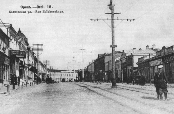 Вид на улицу Болховскую в г. Орле, где располагался магазин деда М. М. Бахтина Николая Козьмича