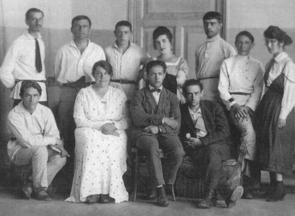 Казимир Малевич (стоит второй слева) и члены группы Утвердителей Нового Искусства. Витебск. 1922 г.