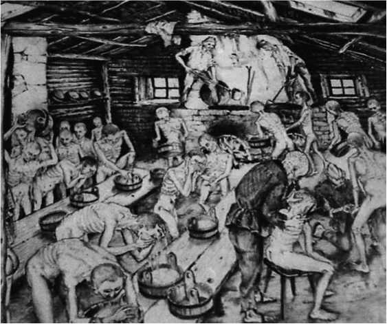 Во время этих походов в баню, когда мы выстраивались со своими тазиками в чём мать родила вдоль длинных столов, появлялась возможность оценить, насколько мы все были худы и измучены и какой «прогресс» произошёл с нашими телами между двумя помывками. Я часто думал об этом, особенно сразу после войны, рассматривая в газетах и журналах жуткие фотографии несчастных заключённых Освенцима, Треблинки и Маутхаузена. Совершенно ту же самую картину я видел вокруг себя в бане тамбовского лагеря зимой 1944/45 года! Я на всю жизнь запомню замечание одного из моих товарищей. Стоя позади меня, он сказал, указав на меня пальцем: «Этот завтра утром больше не проснётся!»