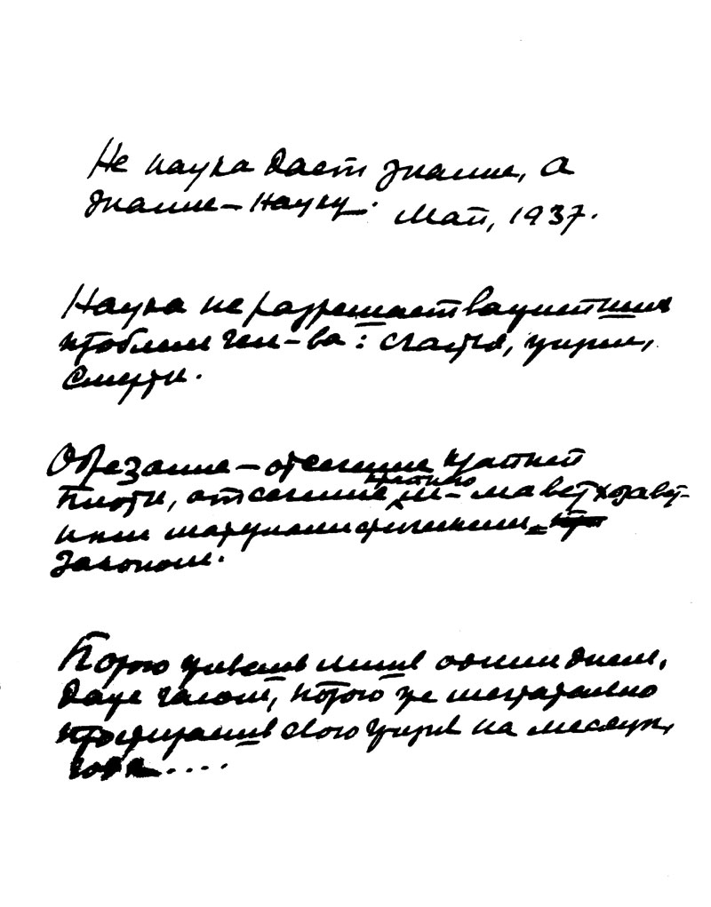 Наука не разрешает важнейших проблем чел[овечест]ва: счастья, жизни, смерти.