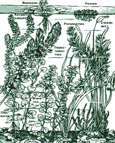 В заключение несколько слов следует сказать о возможности акклиматизации растений из отечественных водоемов для содержания в аквариумах. В свое время представители флоры наших водоемов не были редкостью ни в домашних аквариумах, ни на выставках, однако разнообразие, красочность тропической водной растительности и приспособленность ее к жизни в воде комнатной температуры постепенно заставили аквариумистов позабыть о флоре водоемов средней полосы. И все же такие водные растения, как кабомба, валлиснерия, марсилия, риччия, ряска, рдесты и многие другие были и остаются прекрасными объектами для акклиматизации в аквариуме.