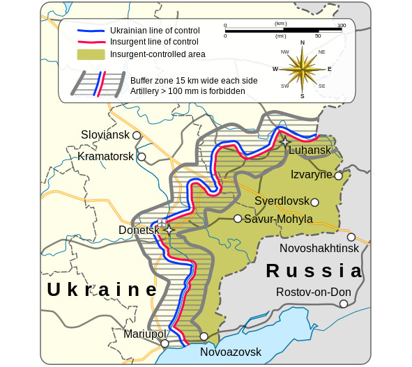 Карта линии разграничения и буферной зоны согласно Минскому соглашению