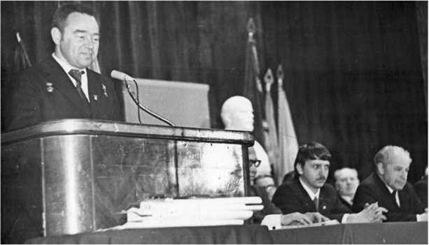 – Полвека вместили многое: период становления и мужания, у истоков которого стояли выдающиеся деятели партии и государства С.М. Киров, С. Орджоникидзе, К.Е. Ворошилов, энтузиазм первых пятилеток, суровые годы войны и замечательные достижении в развитии науки и ряда отраслей в последние годы! – говорил Н.В. Пономарев.