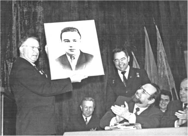 И действительно, вскоре Георгий Михайлович прошествовал по центральному проходу в президиум актового зала, где его приветствовали ректорат и студенты. А.Т. Носов подарил ему фотопортрет, сделанный с карточки его личного дела.