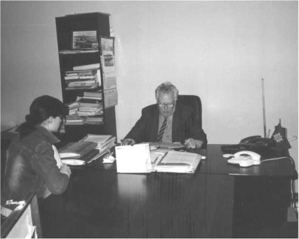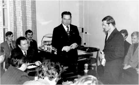 123. Г.М. Гречко принимает отчет о работе ССО «Звездный» его командира Е. Степчихина в парткоме института.