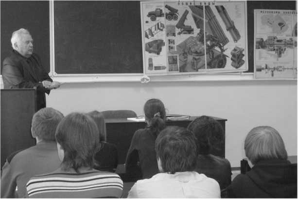 134. БГТУ «Военмех» им. Д.Ф. Устинова, ауд. 375, научный руководитель аспирантов, профессор Б.Ф. Щербаков читает лекцию студентам групп 371, 372 по курсу «Устройство и функционирование ракетных комплексов».