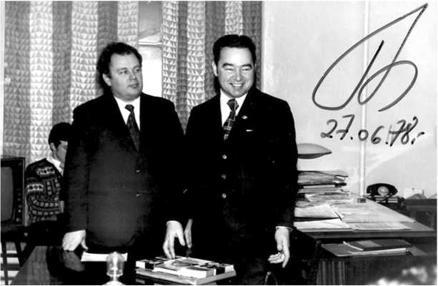 От души желаю вам, дорогие товарищи, доброго здоровья, дальнейших успехов в вашей плодотворной деятельности на благо нашей социалистической Родины».