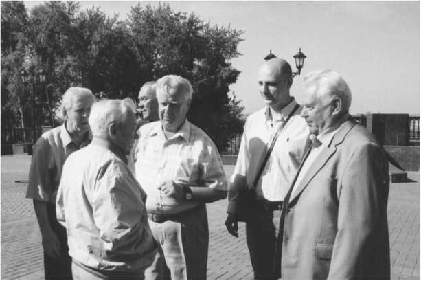 158. Б.Ф. Щербаков с ветеранами Великой Отечественной войны: слева Ю.Д. Обогрелов, справа Л.С. Лёлин