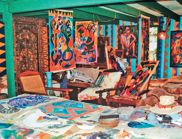 Темнокожие слуги в расписанных мэтром красочных камзолах проворно обслуживают гостей на террасе. Двадцать человек вмещает стол, столешница которого выполнена из цельного куска дерева, некогда поверженного ураганом прямо здесь, на территории усадьбы художника. (см. фото 56)