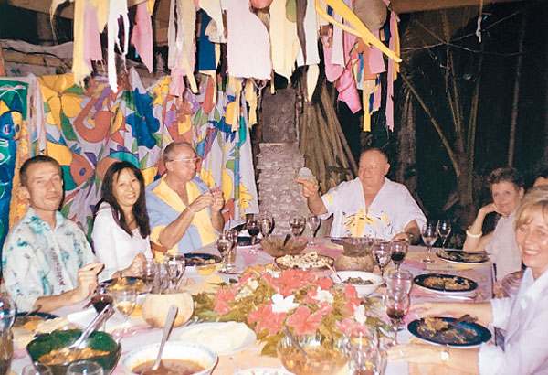 Сегодня – полинезийская кухня: кокосовые крабы и лангусты, запеченые в собственном соусе на горячих камнях. Руководит поварами соратник и сподвижник Ника Мишутушкина – художник Алои Пилиоко. Уроженец острова Валлис, сопровождавший Николая еще в начале восьмидесятых с выставкой примитивизма народов Океании по Советскому Союзу, делится воспоминаниями о первом в своей жизни снеге и шапке-ушанке.
