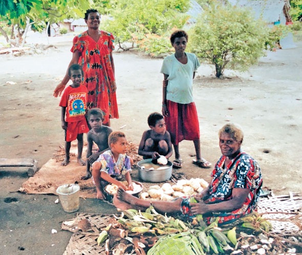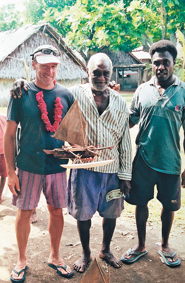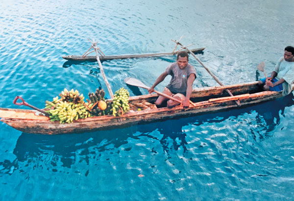 Спустив динги (надувная моторная лодка), мы отправились на берег знакомиться. Пакет риса и пачка молотого корня перцового куста (кава-кава) были нашим подарком. Взамен мы получили плоды памплимус (их еще называют помело), бананы и папайю. Знакомство состоялось. Если добавить ко всем уже перечисленным продуктам корни маниока и пойманную в заливе рыбу, получится ежедневный рацион островитянина. Наверное, не надо говорить, что электричества, дорог и подвесных моторов для каноэ тут не существует?