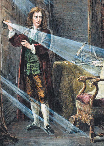 Ньютон проводит опыты с призмой в своей комнате в колледже Святой Троицы.