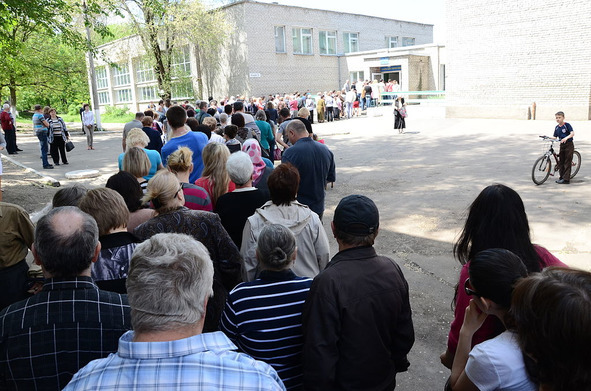 Очередь из желающих проголосовать на референдуме в Донецке. Пройдет всего несколько месяцев — и такие же очереди будут за ахметовской гуманитаркой.