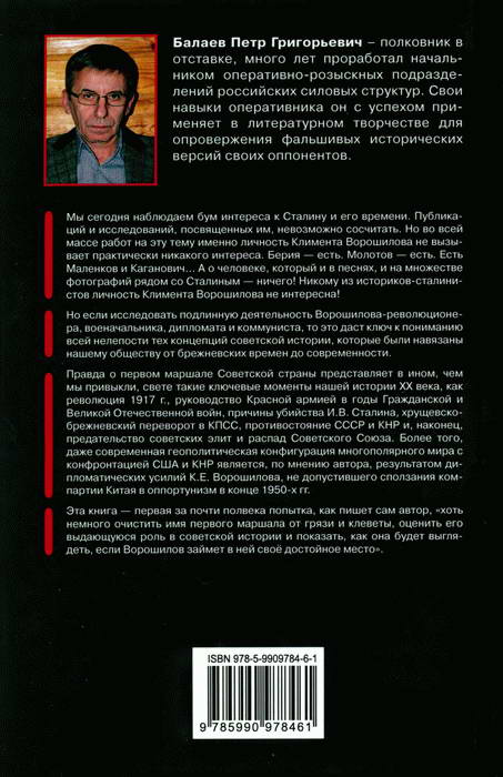 Правда о первом маршале Советской страны представляет в ином, чем мы привыкли, свете такие ключевые моменты нашей истории XX века, как революция 1917 г., руководство Красной армией в годы Гражданской и Великой Отечественной войн, причины убийства И.В. Сталина, хрущевско-брежневский переворот в КПСС, противостояние СССР и КНР и, наконец, предательство советских элит и распад Советского Союза. Более того, даже современная геополитическая конфигурация многополярного мира с конфронтацией США и КНР является, по мнению автора, результатом дипломатических усилий К.Е. Ворошилова, не допустившего сползания компартии Китая в оппортунизм в конце 1950-х гг.