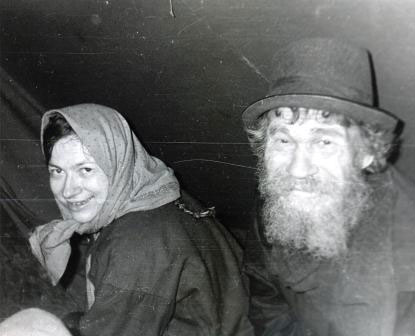 Закончив молитву, Агаша вышла из избы. Александр Матвеевич пытается снимать ее из-за поленницы, но сразу разоблачен таежницей и вынужден оставить это не богоугодное дело. В разговоре с нами Агафья добрым словом вспоминает геологов Алтайской экспедиции с реки Бия. Они хорошо помогли Агаше, пилили дрова, делали завалинки к избе. Старшим у них был Романцев Борис Васильевич, который живет на Бие в Алтайском крае, а его сын, сестры и мать в Кизиле. Вероятно, Борис Васильевич одной с Агафьей веры и не только хороший, но и скромный человек, т. к. не хотел, чтобы Агаша рассказывала Пескову и Черепанову о его помощи («чтобы не писали в газетах»).