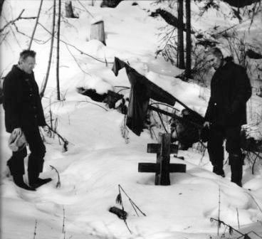 Пошли на могилу Карпа Иосифовича. Анисим Тропин из Киленского делал крест на могилу. Закапывали тело зимой не глубоко. «Ерофей с ломом пробовал, где земля более податлива, кострами землю не отогревали. Могилы-то копают без огня. Тело обложили плахами, после сяла земля-то, я заправляла. Весной приходил медведь, хотел разрыть (могилу), отпугнула выстрелом, а затем пужало из красной рубахи сделала», — рассказывала Агафья.