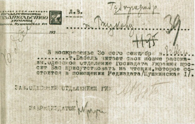 23. Приглашение. И. Бабель читает новые рассказы в помещении Редиздата/Пушкинская 1/. Одесса. 30 сентября 1923