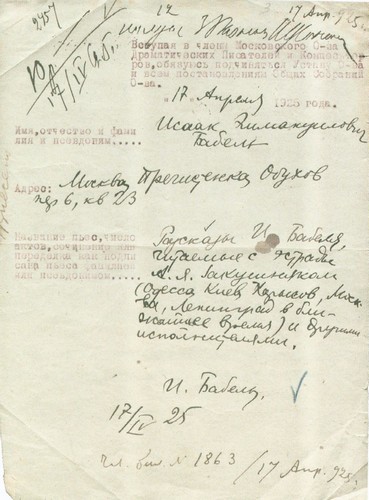 24. Анкета Московского общества драматических писателей и композиторов (МОДПиК), заполненная И. Бабелем. Москва. 17 апреля 1925