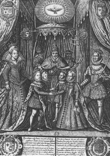 Оставалось обсудить еще кое-какие детали. Испанская сторона настаивала, чтобы стоимость обручальных колец была не меньше 100 тысяч экю. Французы сократили ее вдесятеро, условившись, что кольцо будущей королевы Франции будет подарком ее отца; в свою очередь, будущей принцессе Испании кольцо подарит ее брат (в те времена кольцо надевали только женщине в знак власти супруга над ней). Испанскому послу даже предоставили возможность выбрать кольцо из всех имевшихся в наличии. Людовик уполномочил герцога де Лерму, испанского первого министра, от его имени заключить брак с испанской инфантой, а герцога Астурийского (которому было всего десять с половиной лет) при оформлении брачного союза с принцессой Елизаветой представлял герцог де Гиз.