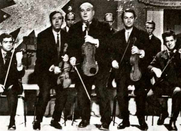 «Когда Нина идет и песенку поет, а я вступаю тоненьким голоском — помните? Этим самым голоском я пою в концертах частушки. Однажды мы выступали в воинской части, я стоял за кулисами, и ко мне подошла молодая артистка — худ-дая! худее Гурченки и так скромно говорит: «Я тоже стараюсь так петь, как и вы, актерски». Она пела тогда только одну песенку — «Все могут короли». Я ее слова принял совершенно серьезно. Правильно, думаю, рассуждает начинающая артистка. Потом, когда она стала ПУГАЧЕВОЙ, я хохотал, вспоминая этот случай. После него я всем говорю: это моя ученица».