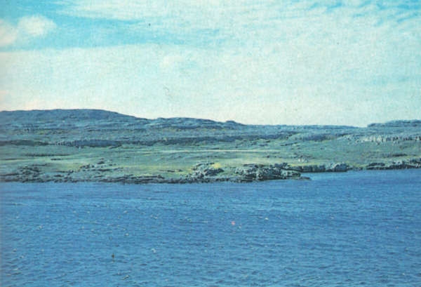 ...Весь вечер я не уходил с верхнего мостика, наблюдая медленно надвигающуюся землю. Мы вышли на траверз островов Ранде-Ву и начали огибать архипелаг с востока, как предписывалось в лоции. В бинокль уже можно было рассмотреть низкие, унылые, словно зализанные океаном берега, а поодаль вставали высокие зазубренные пики, на склонах которых сквозь дымку смутно просматривались снежные пятна. Лучи заходящего солнца, пробившись в разрывах облаков, на миг раскрылись над островом гигантским веером, но тут же скрылись за тучами. Все сразу потемнело, приобрело мрачноватые темно-сиреневые тона.