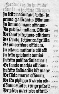 Любопытно, что в экземпляре из Ромонта текст мессы для праздника «Praesentatio…», установленного майнцским архиепископом Адольфом фон Нассау 30 августа 1468 г. для всего архиепископства, в которое входила и констанцская диоцезия, вписан от руки. За книгой даже утвердилось название «Миссал Констанцский», хотя критики Миссе, а таких было немало, указывали, что ни один из святых, почитаемых в Констанце, городе на берегу Боденского озера, в «Миссале специальном» не упомянут.