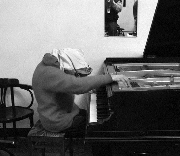 И сел-таки за рояль. На голове – наволочка, грязноватая.