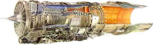 Разрез авиационного двигателя.