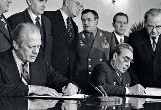 Генеральный секретарь ЦК КПСС Л. И. Брежнев и Президент США Дж. Форд во время подписания совместного советско-американского коммюнике. 24 ноября 1974 г.