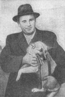 Выдержат ли собаки полет на высоту до ста километров? На руках у Сергея Павловича одна из первых собачек, успешно летавших на ракетах (50-е годы).