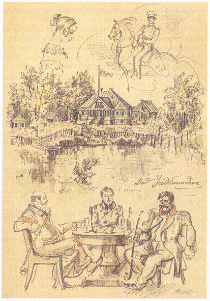 Поскольку в реконструкции образа героини какая-то просто необозримая свобода, почему бы не представить усадьбу, такую среднестатистическую, не очень богатую, в меру запущенную, где-нибудь на окраине Старицы, с двором, обнесённым клёнами, с рябиновым садом и липовой аллеей? Аллею можно довести до поля, а в глубине представить пруд, заросший, но рыбный. Перед домом разбита клумба, а в гостиной стоит огромное трюмо; за вышиванием сидят девочки: Жюли и Натали, уютно и красиво. Даже если и не так.