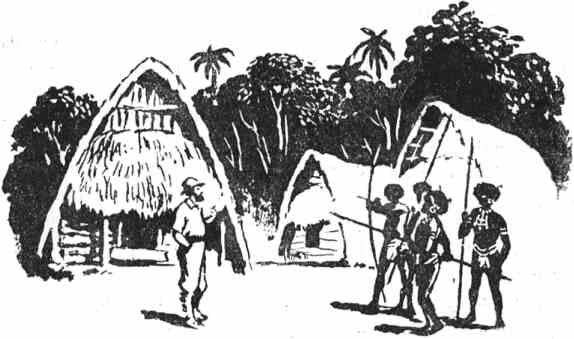 «Группа вооруженные копьями людей стояла посредине, разговаривая оживленно, но вполголоса между собой. Другие, все вооруженные, стояли поодаль; ни женщин, ни детей не было — они, вероятно, попрятались.