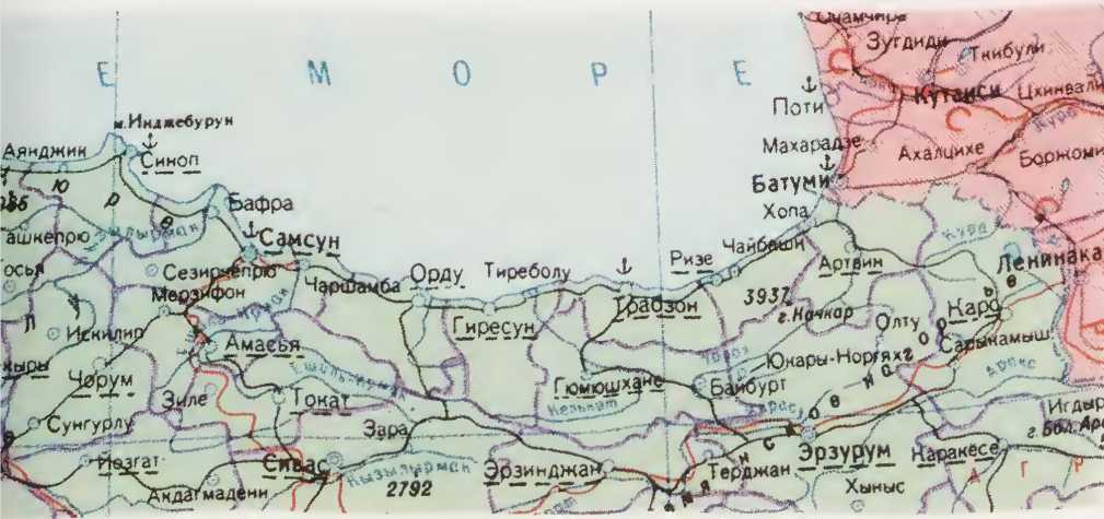 Карта Черного моря. (Взята из старого атласа СССР, авторские права не известны)