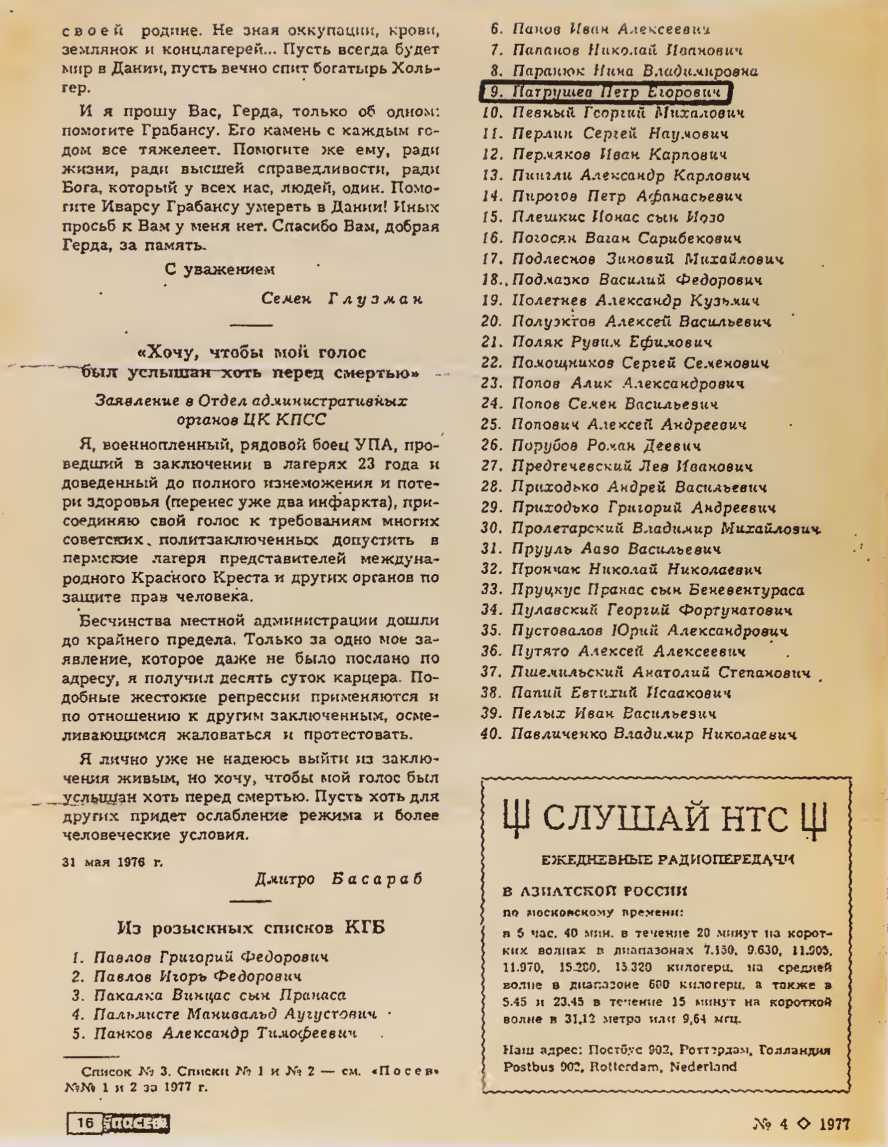 Фамилия автора в розыскных списках КГБ, напечатанных в «Посеве»