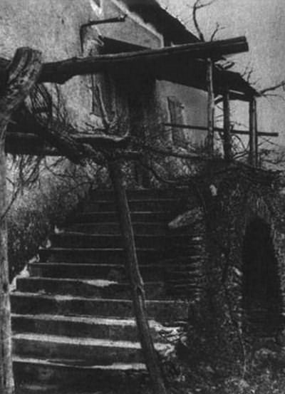 Шанель в 1909 году, в скромном наряде и блузе воспитанницы монастыря.