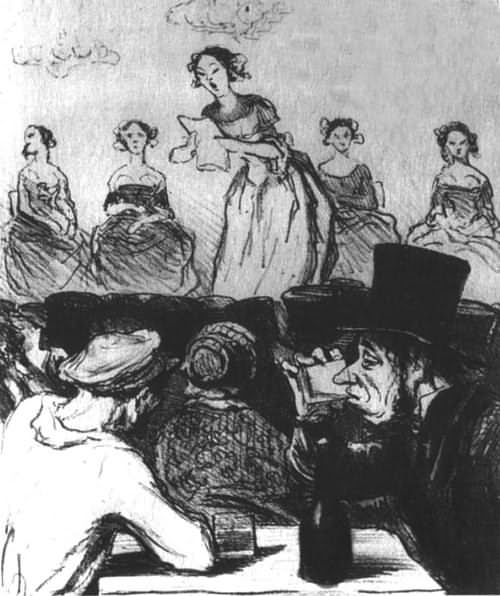На рисунке Домье запечатлено типичное кабаре того времени.