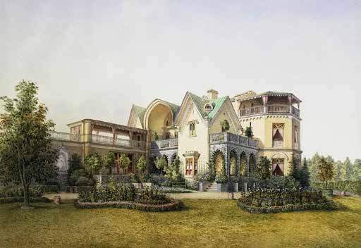 Коттедж в парке Александрия в Петергофе, архитектор Адам Менелас. Неизвестный художник.