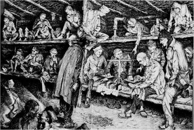 Другой тяжёлый период был связан с супом из моркови, вернее, из морковной ботвы, поскольку мы в нём ни разу не нашли ни следа самих овощей. Это был просто отвар без капли жира, полученный путём кипячения листьев. Ботвы в супе было очень много, но проглотить её ни у кого не получалось. Объяснялось это, скорее всего, тем, что в военный лагерь по соседству привозили много овощей — и все листья великодушно отдавали в лагерь для военнопленных.