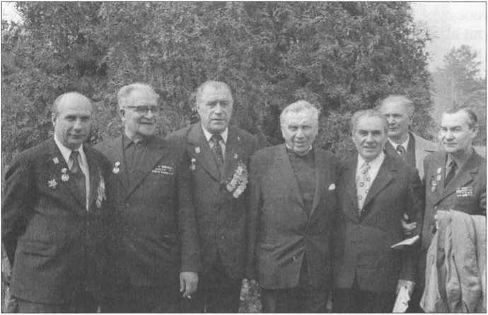 Н.И. Эйтингон (в центре) и бывшие бойцы ОМС БОН на встрече ветеранов