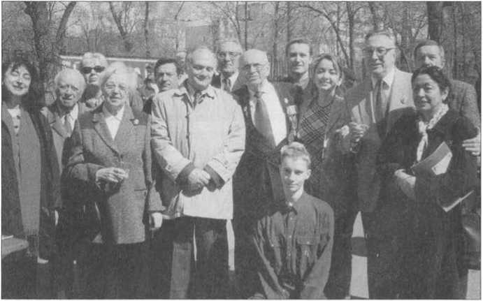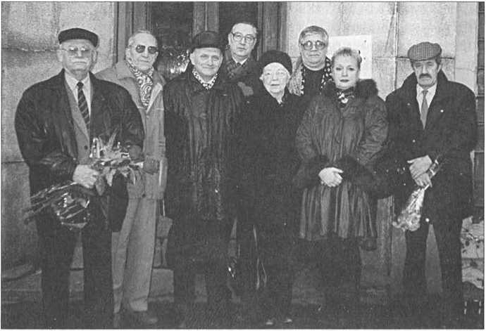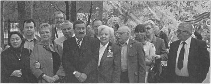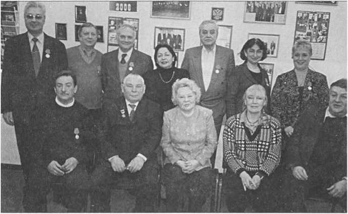 8 мая, День Победы на «Динамо». 2006 год Слева направо: Татьяна Окунь, Валерий Назиров, Муза Малиновская, Пётр Нищее, Сергей Васильев, Зоя Зарубина, Теодор Гладков, внучка Н. Эйтингона — Анастасия, Леонид Эйтингон