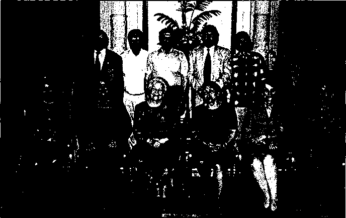 Дети разведчиков, получившие награды за своих родителей: сидят — А. Асимов (Тимашков), П. Нищее, М. Ковалёва, Э. и М. Кумаръяны, стоят — Ю. Батурин, А. Рыбкин, А. Серебрянский, Т. Гущина (Окунь), Б. Маклярский, Н. Григулевич, М. Малиновская.