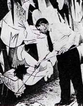 Стадии работы над "Герникой" (см. фрагмент на следующей странице) тщательно фиксировались Пикассо, который датировал каждый рисунок днем и часом и запечатлевал на фотографиях (см. внизу слева) различные фазы создания картины.