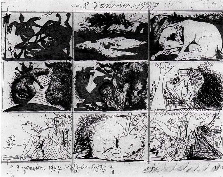 Первый рисунок "Герники" (11 марта 1937 года, Мадрид, Прадо).