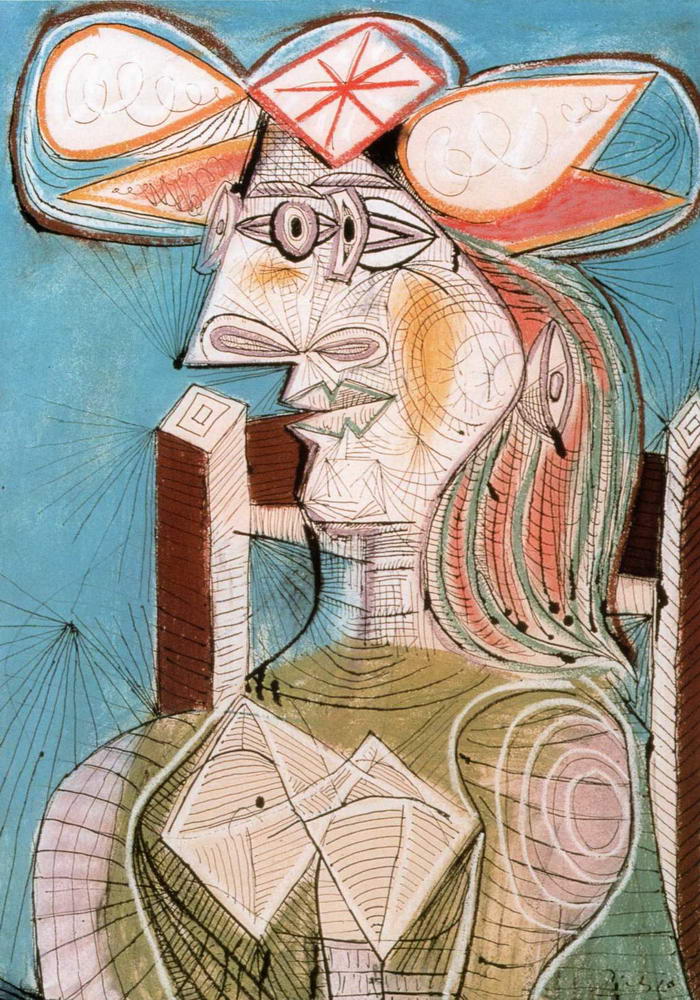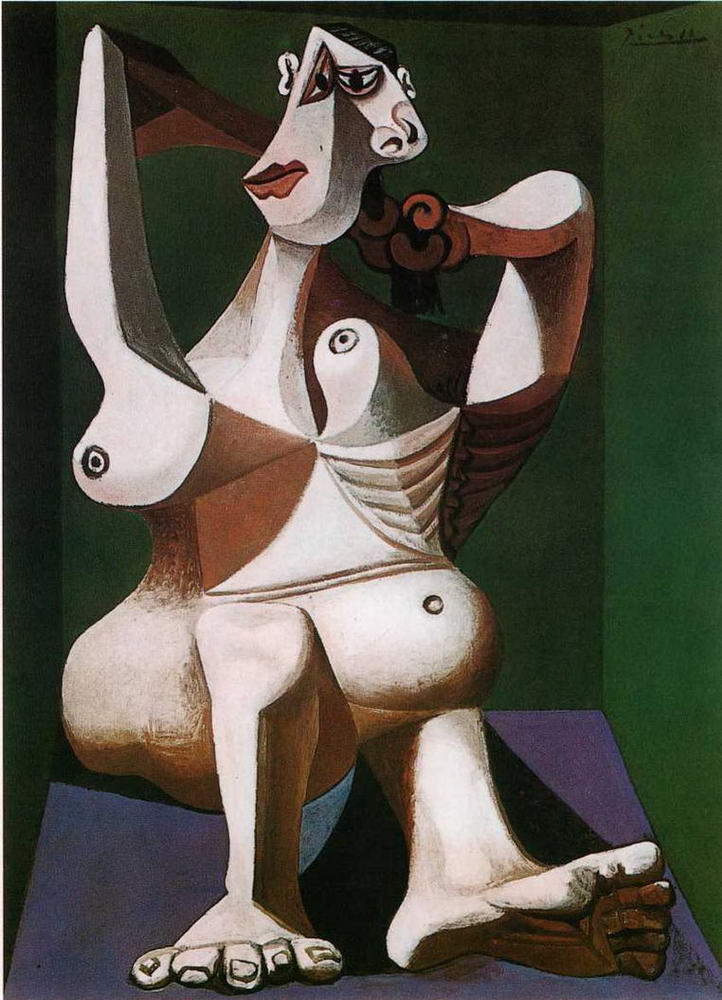 "Причесывающаяся женщина" (1940) пример того, как Пикассо в зрелости стремится найти точку равновесия между юношескими деформациями и классической монументальностью "неоклассики".